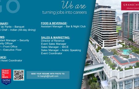 -Bangkok Hotel Job งานโรงแรมกรุงเทพ Grand Hyatt Erawan Bangkok โรงแรมแกรนด์ ไฮแอท เอราวัณ กรุงเทพฯ by admin July 18, 2025 Your next opportunity is knocking. Let’s open the door together. อัพเดทตำแหน่งงานว่างวันที่ 18 กรกฎาคม ... Read More