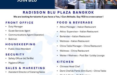ขออนุญาตประชาสัมพันธ์ตำแหน่งงานว่าง ประจำวันที่ 16 กุมภาพันธ์ค่ะ โรงแรมแชงกรี-ลา กรุงเทพฯ เปิดรับสมัครตำแหน่งงานว่าง สนใจสามารถส่ง CV มาได้ที่ recruitment.slbk@shangri-la.com หรือสอบถามข้อมูลโทร 02-236-7777 ***ขอติดต่อกลับเฉพาะผู้สมัครที่ผ่านการคัดเลือกรอบแรกนะคะ***