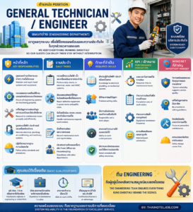 🔧 General Technician / Engineer. แผนกช่าง (Engineering Department) 🔹 หน้าที่หลัก (Key Responsibilities) ...