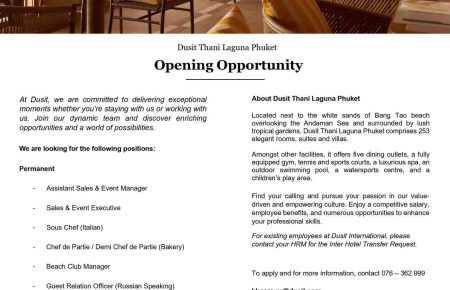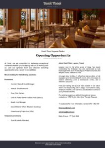 โรงแรมดุสิตธานี ลากูน่า ภูเก็ต เปิดรับสมัครพนักงานผู้มีใจรักในงานบริการ เข้าร่วมเป็นส่วนหนึ่งของเรา 📩 กรุณาส่ง Resume / ประวัติส่วนตัวมาได้ที่ Khasra.pr@dusit.com Sirirat.tw@dusit.com 📞 สอบถามข้อมูลเพิ่มเติม ...