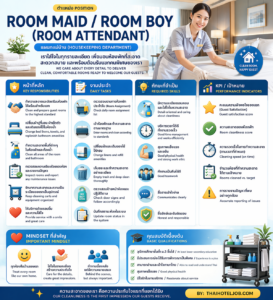 🧹 Room Attendant (Room Maid / Room Boy) แผนกแม่บ้าน (Housekeeping Department) 🔹 หน้าที่หลัก (Key ...