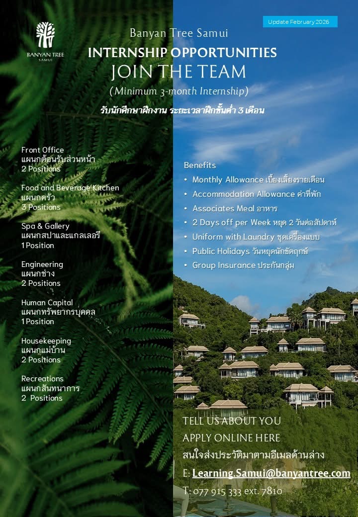 ขออนุญาตประชาสัมพันธ์ ตำแหน่งงานว่างโรงแรม บันยันทรี สมุย