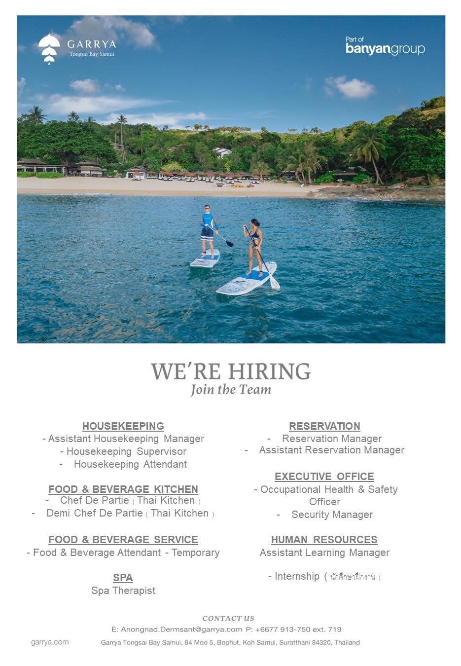 -Koh Samui Hotel Job งานโรงแรมเกาะสมุย Garrya Tongsai Bay Samui by admin July 2, 2025 Garrya Tongsai Bay Samui โรงแรมการ์รียา ท้องทรายเบย์ สมุย ขอประชาสัมพันธ์ตำแหน่งงานว่าง อัพเดท ณ วันที่ 1 กรกฎาคม 2568 ... Read More