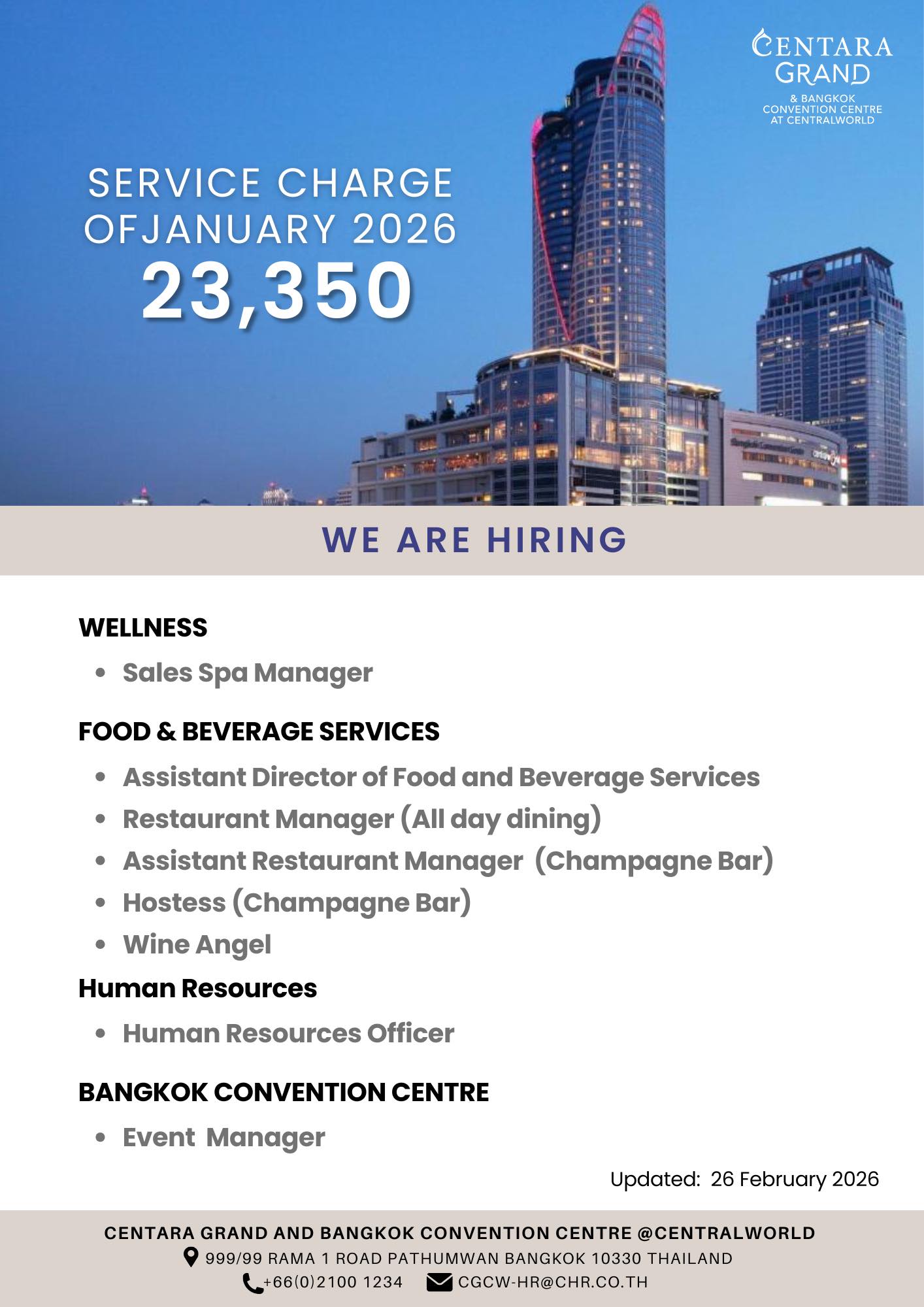 **ทางโรงแรมขอสงวนสิทธิ์ในการติดต่อเฉพาะผู้สมัครที่ผ่านการคัดเลือกเท่านั้น*
