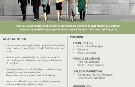 Join our team at Four Seasons Hotel & Private Residences Bangkok at Chao Phraya River. Apply via email: Jobs.bangkok@fourseasons.com