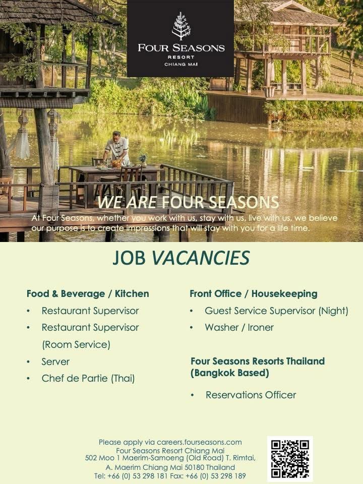 สแกน QR Code เพื่อสมัคร หรือส่งประวัติส่วนตัวมาได้ที่ phanrawee.ruanin@fourseasons.com