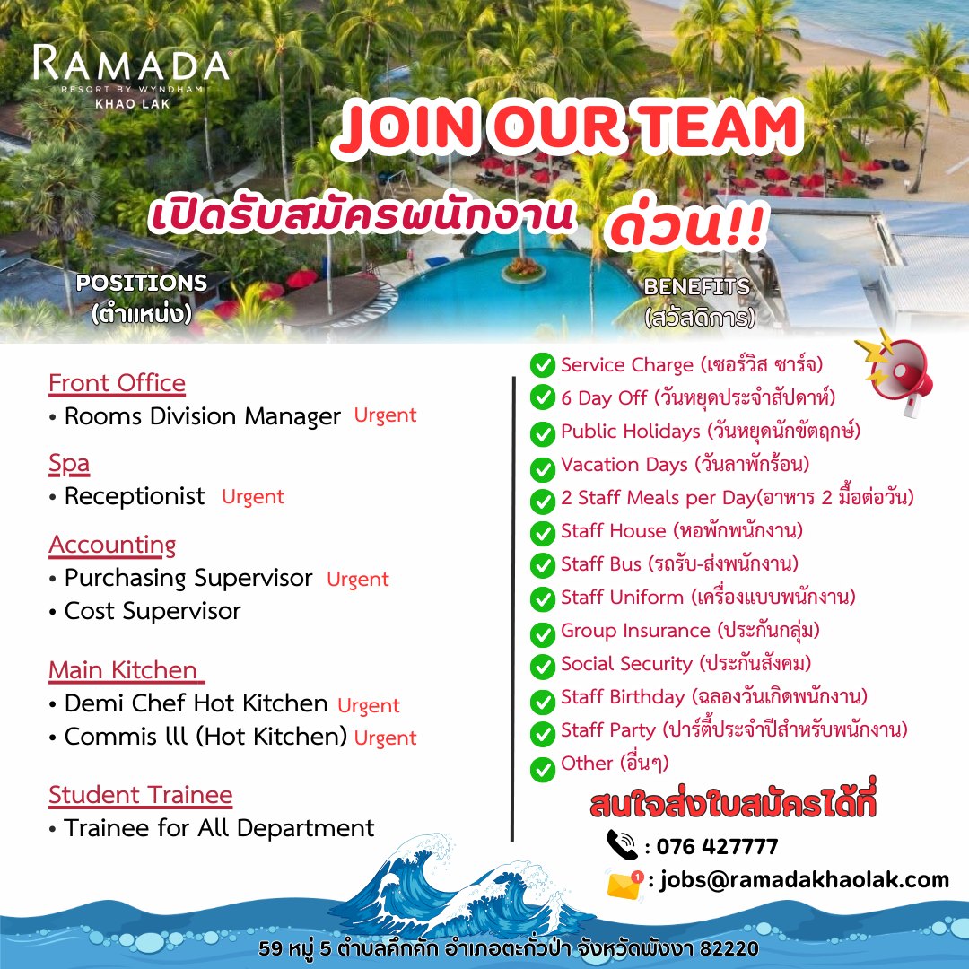 📌 สมัครเลย! ส่ง Resume มาที่: jobs@ramadakhaolak.com