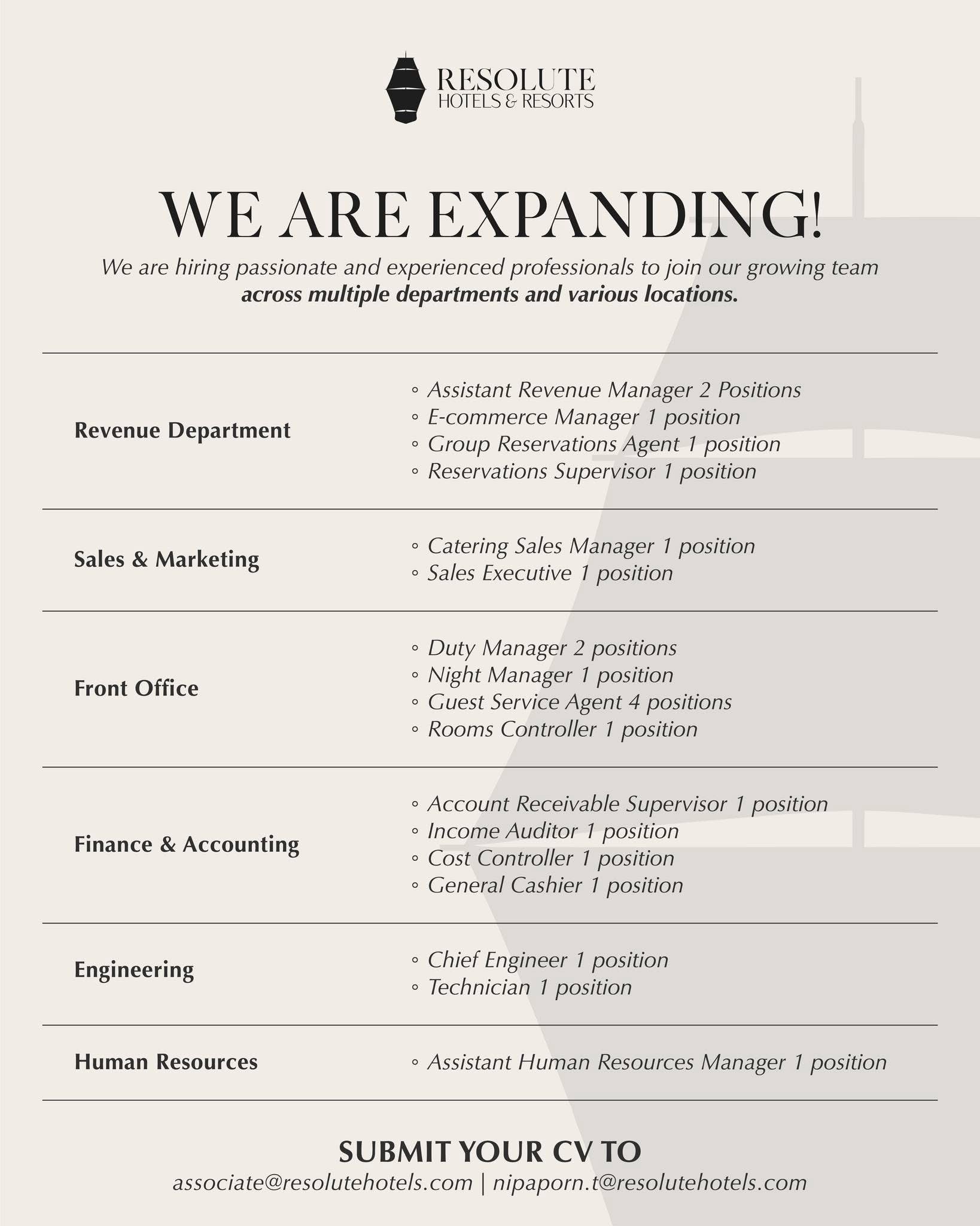 📩 Send your resume to associate@resolutehotels.com and nipaporn.t@resolutehotels.com
