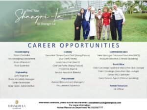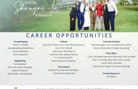 ขออนุญาตประชาสัมพันธ์ตำแหน่งงานว่าง ประจำวันที่ 14 เมษายนค่ะ โรงแรมแชงกรี-ลา กรุงเทพฯ เปิดรับสมัครตำแหน่งงานว่าง สนใจสามารถส่ง CV มาได้ที่ recruitment.slbk@shangri-la.com หรือสอบถามข้อมูลโทร 02-236-7777 ***ขอติดต่อกลับเฉพาะผู้สมัครที่ผ่านการคัดเลือกรอบแรกนะคะ***